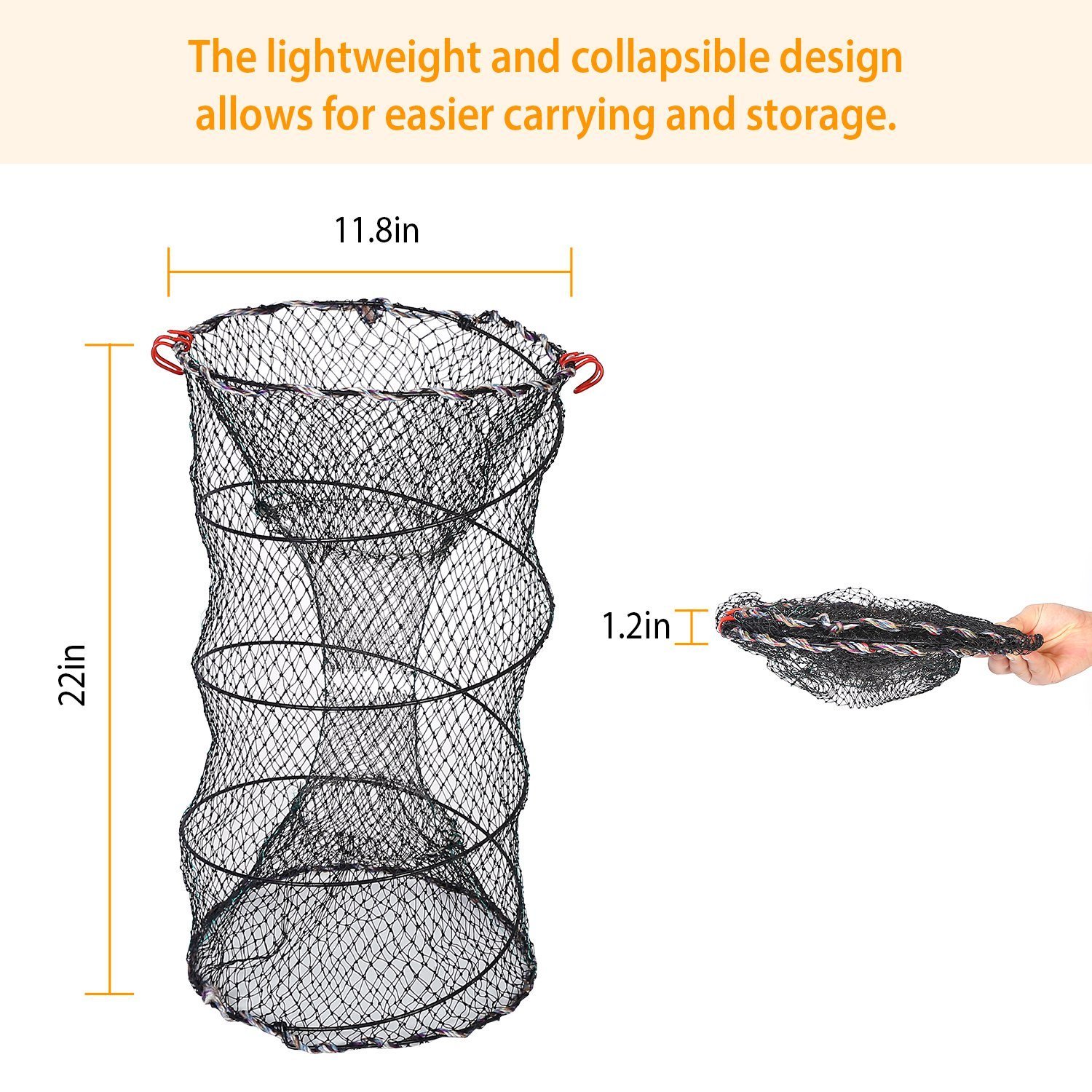2Pcs Crab Trap Bait Nets Shrimp Prawn Crayfish Lobster Bait Fishing Pot Cage Basket 22x11.8in