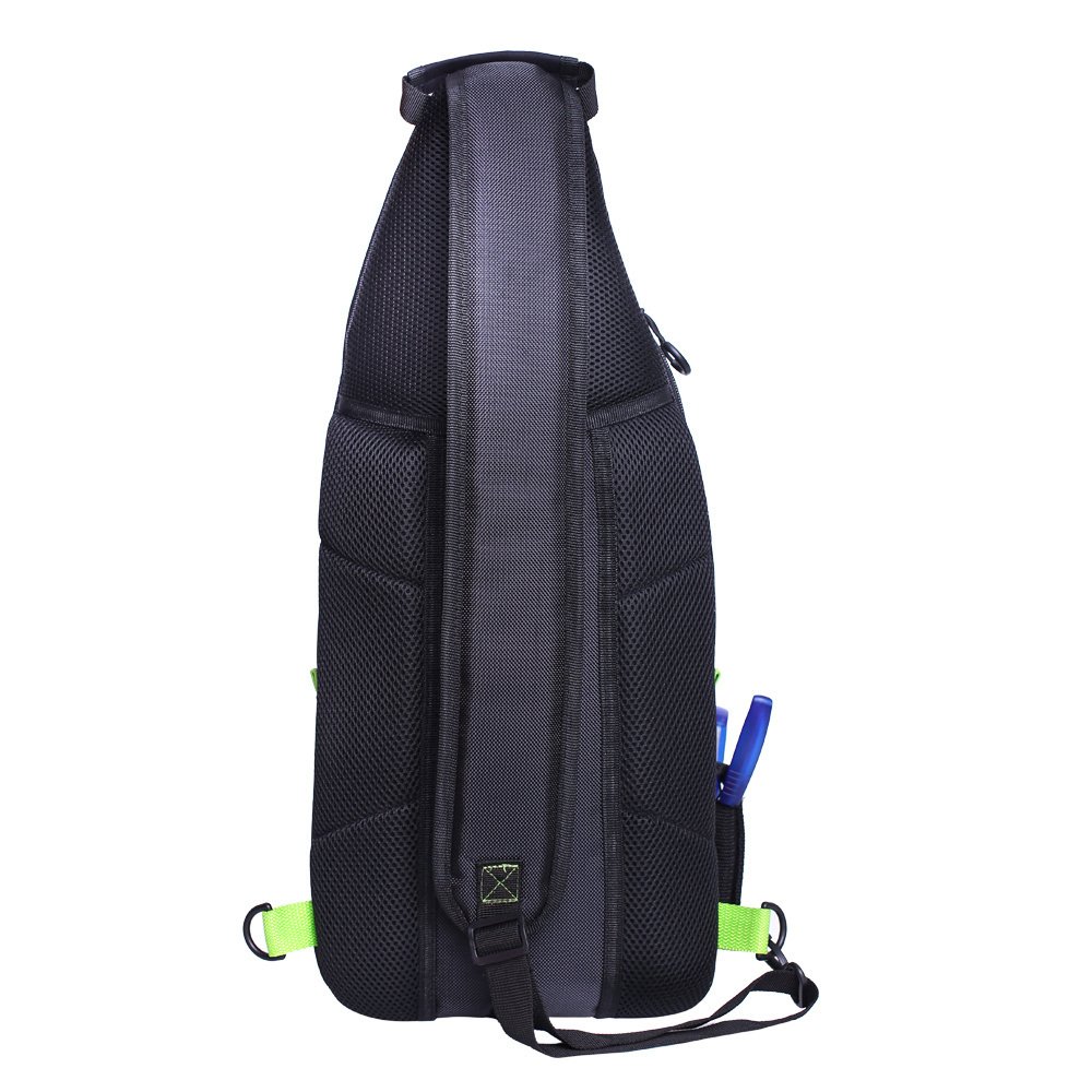 1.ADJUSTABLE MULTI-USE BAG:Fishing shoulder bag designed to be worn on the wearer's chest for quick access to packed gear or on the wearer's back for travelling .This fishing bag is equipped with padded shoulder straps that can be adjusts to wear on left or right side, to satisfy your different needs